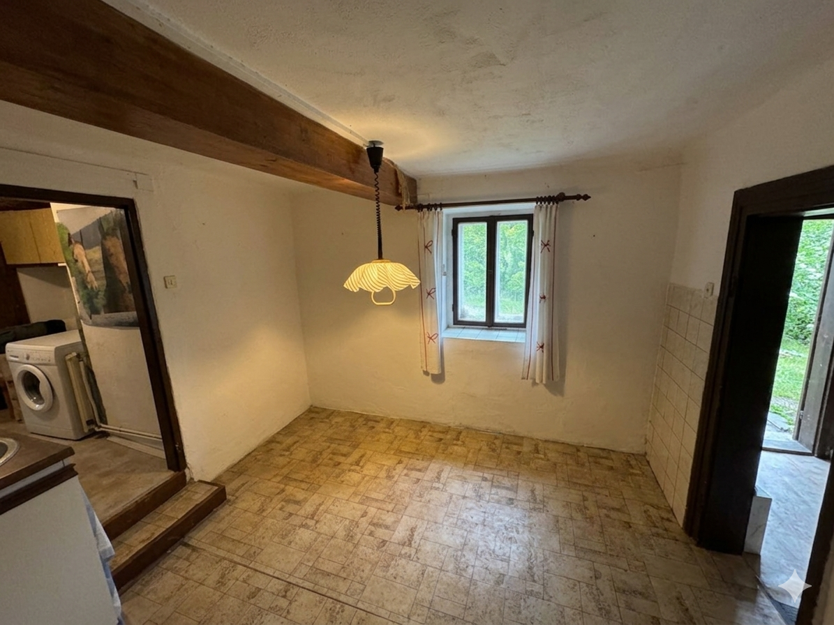 Objekt o užitné ploše 90 m² je ideální pro ty, kteří nechtějí platit za cizí, neodborné úpravy, ale hledají poctivý základ pro vlastní realizaci. Interiér odhaluje krásné původní dřevěné trámy a autentické prvky, které lze při citlivé obnově skvěle zakomponovat do moderního bydlení či rekreace.