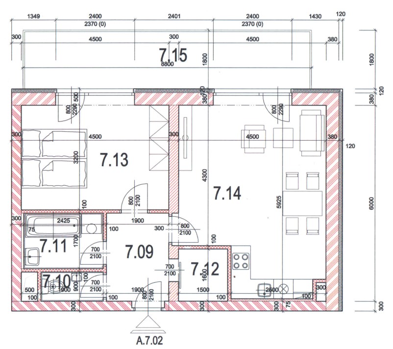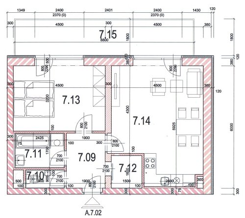 V koupelně se nachází vana, umyvadlo, zrcadlo s osvětlením a otopný žebříkový radiátor (včetně el. patrony). Samozřejmostí je příprava odpadu pro pračku i sušičku, což oceníte při každodenním používání. V ložnici a obývacím pokoji spojeným s kuchyní je použita plovoucí podlaha v dekoru imitace dřeva, zatímco v ostatních místnostech je položena keramická dlažba, která je nejen estetická, ale i snadno udržovatelná.