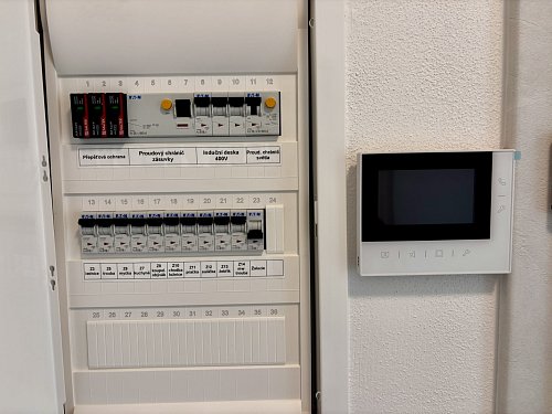 Místnostmi bytu jsou předsíň, samostatná koupelna, samostatné WC, obývací pokoj spojený s kuchyní, ložnice, šatna (nebo komora), dále balkon a sklepní kóje v přízemí bytového domu. Kuchyňský kout je vybaven novou kuchyňskou linkou s kvalitními spotřebiči značky Electrolux, včetně elektrické trouby, varné indukční desky, myčky nádobí, digestoře a vestavěné lednice, což zaručuje pohodlné vaření a přípravu jídel.