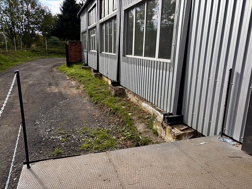 Na 2/3 jižní strany se nachází zastřešená nakládací rampa.